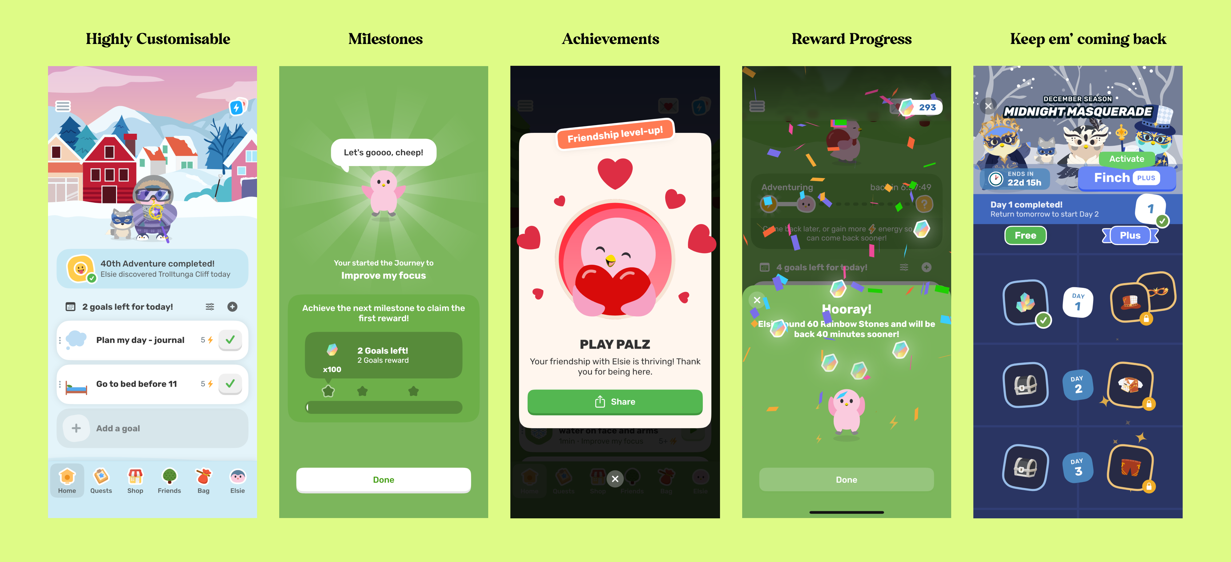 Sure, it has practical features you can expect like setting goals, tracking your mood, breathing exercises and much more, but it’s the little details that make it truly a fun experience.